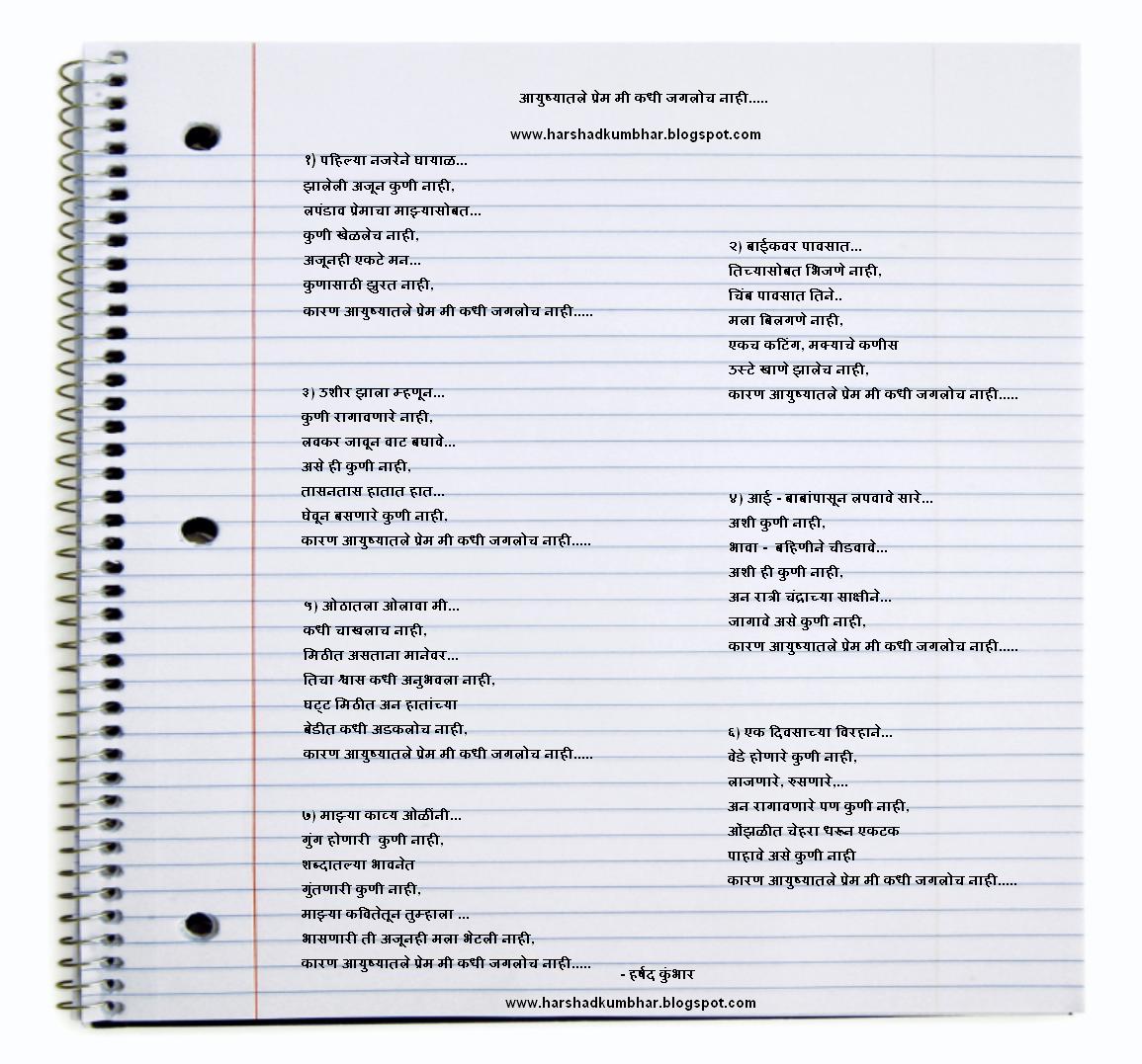Malhar mitra, mi samju shakato tujhya bhavana. je manat ahe te lihine ya shivay dusare te kavya kay. pan kharach yapudhe vegalya kavita karnyacha prayatna karen mi, mi kela pan ahe. itar kavita prakarat paha ahe  majhya khup kavita. thanx for comment.